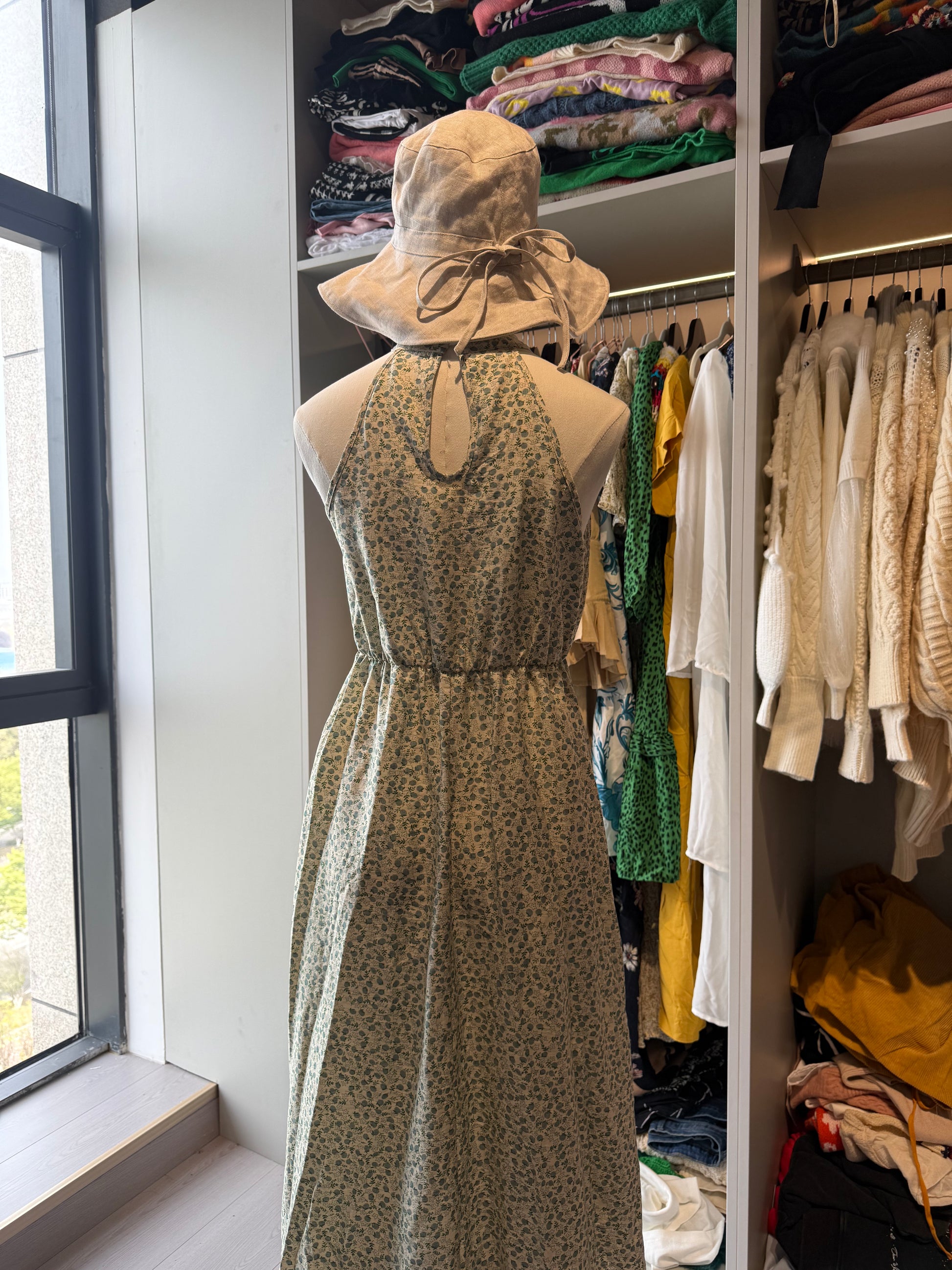 REINAREA High - End Custom Boho Dress for Women: Sleeveless Halter Neck, Backless Floral Midi with Ruffled Hem and High - Elastic Waist