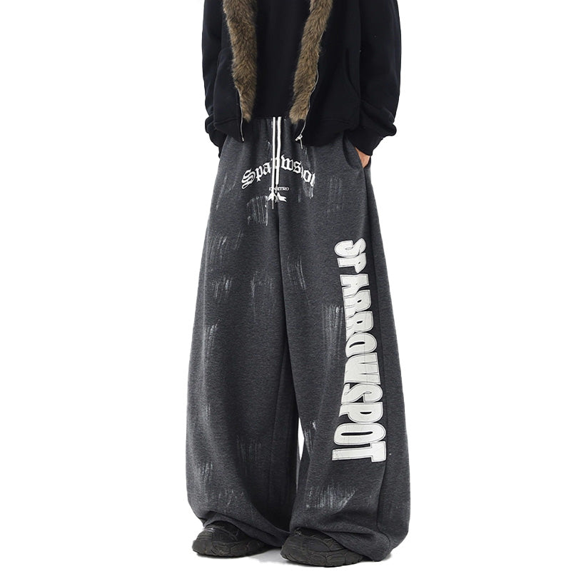 REINAREA Streetwear Sweatpants Unisex Retro Letter Print Loose Wide-Leg Casual Pants