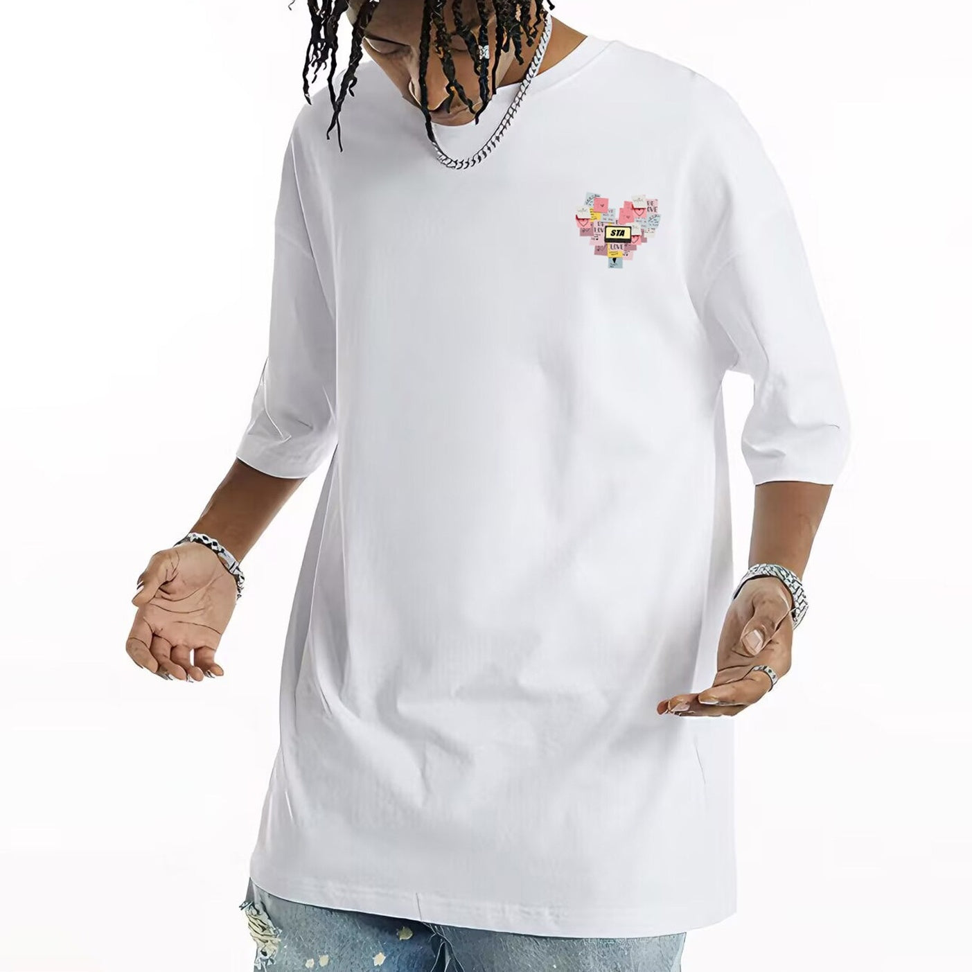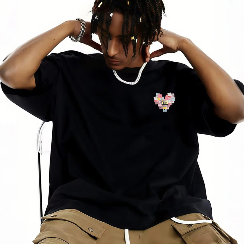 REINAREA Unisex Vintage Heavyweight T-Shirt Printed Cotton Trendy Short-Sleeve
