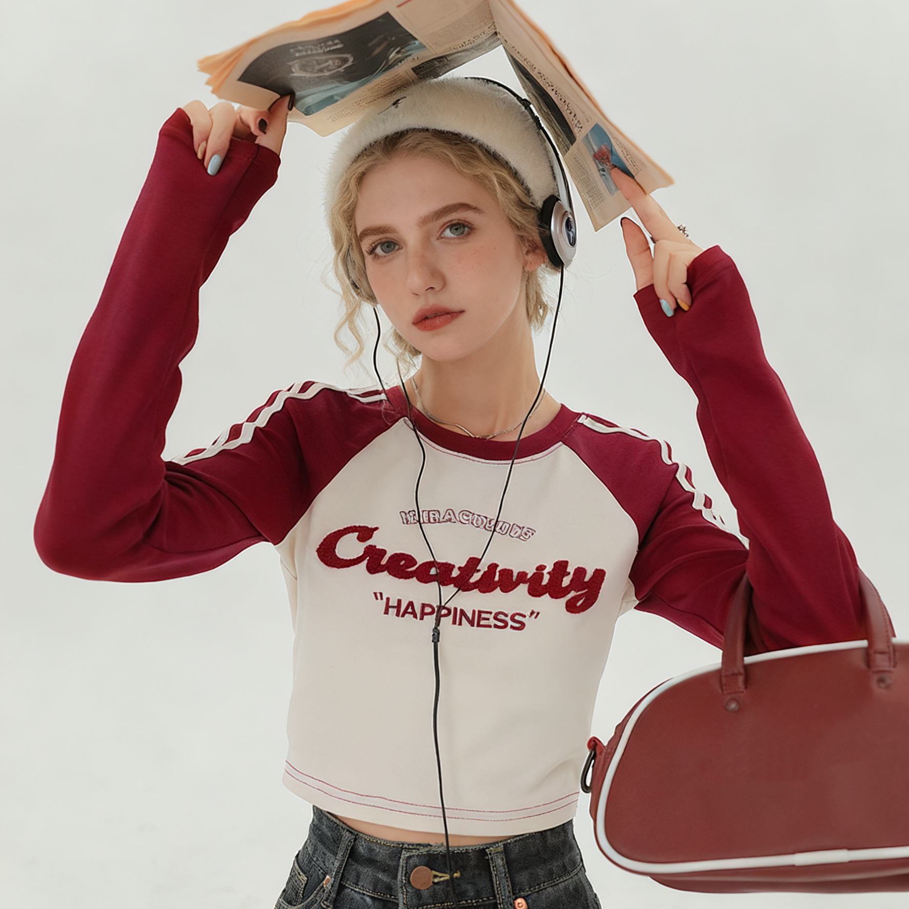 REINAREA Women’s Y2K-Inspired Raglan Long-Sleeve T-Shirt Cropped Top