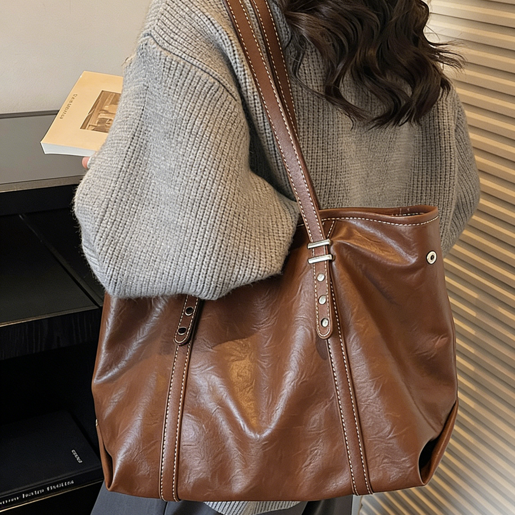 REINAREA Women's Relaxed Retro Tote Bag Large Capacity Commuter Shoulder Bag