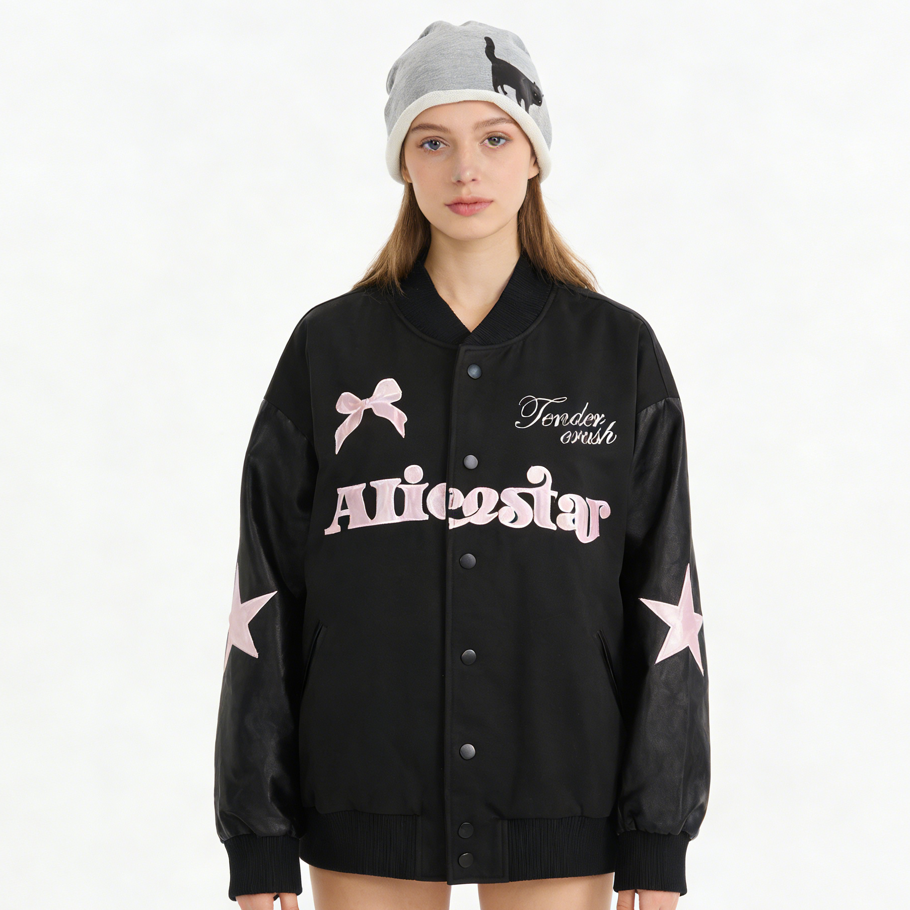 Why choose between sweet and edgy? Our Butterfly Varsity Jacket blends vintage American athletic vibes with delicate embroidery, creating a statement piece for your street-style rotation.