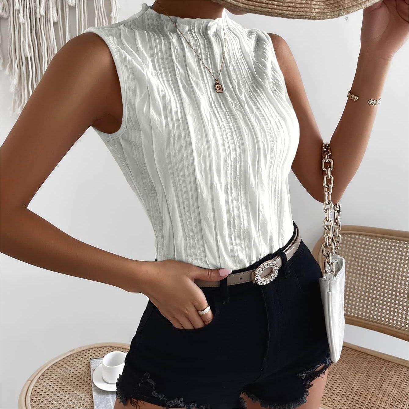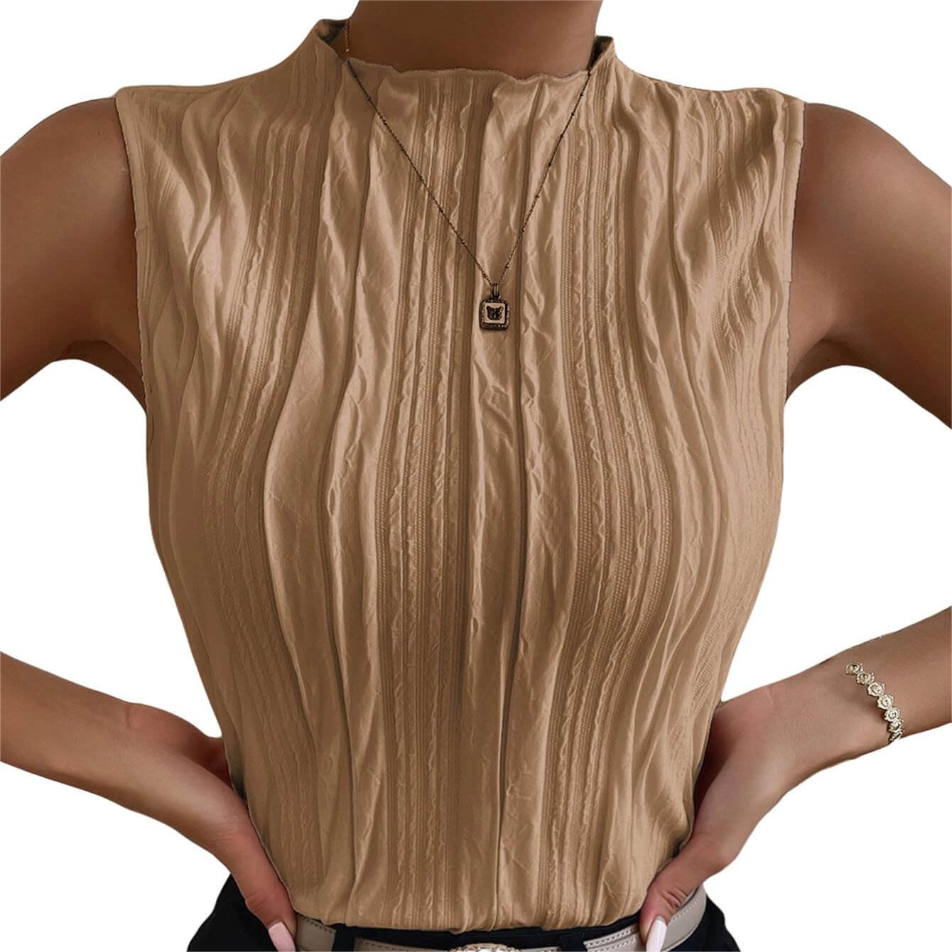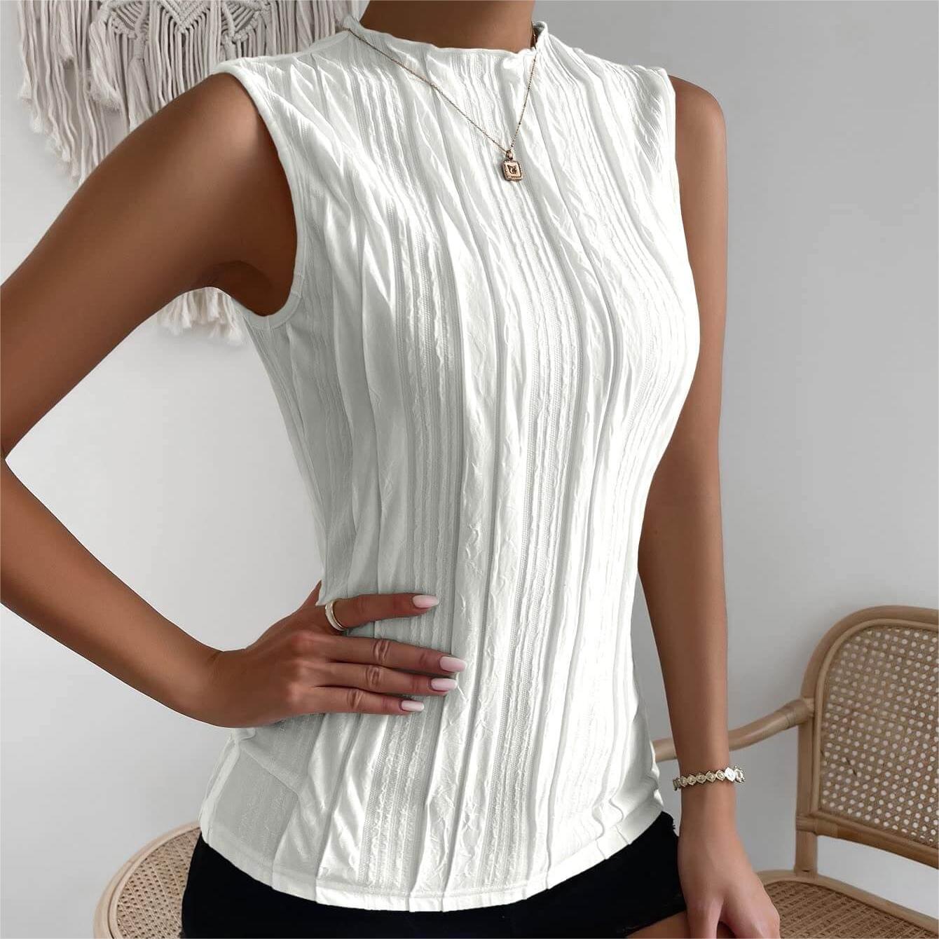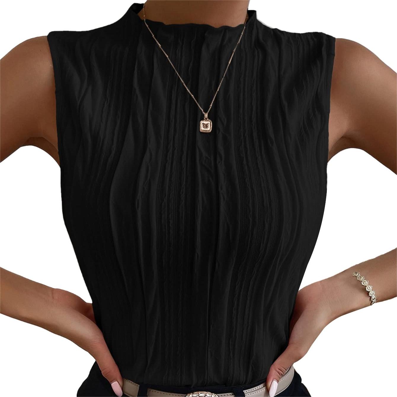 - Sleeveless, mock neck, regular fit, casual tank top