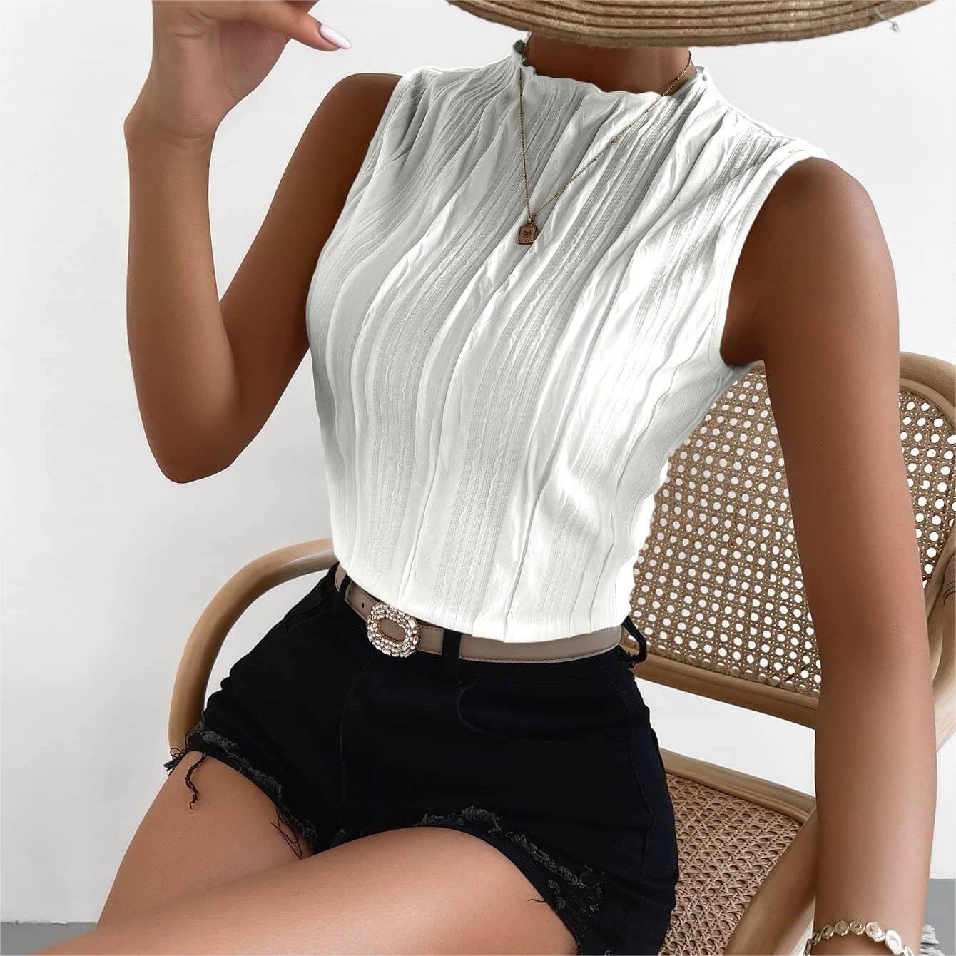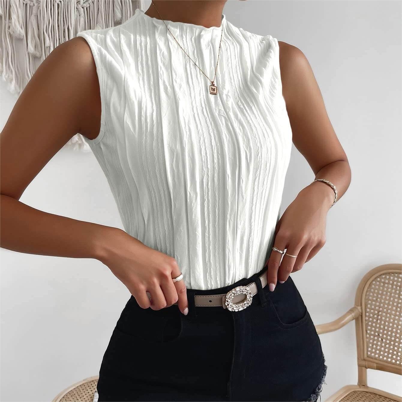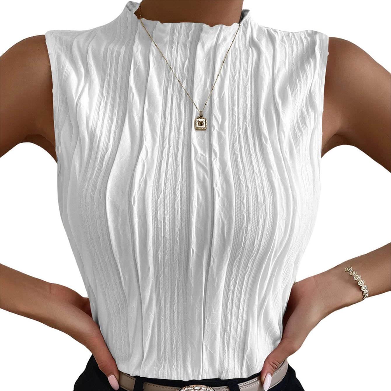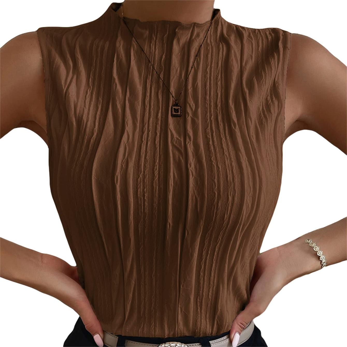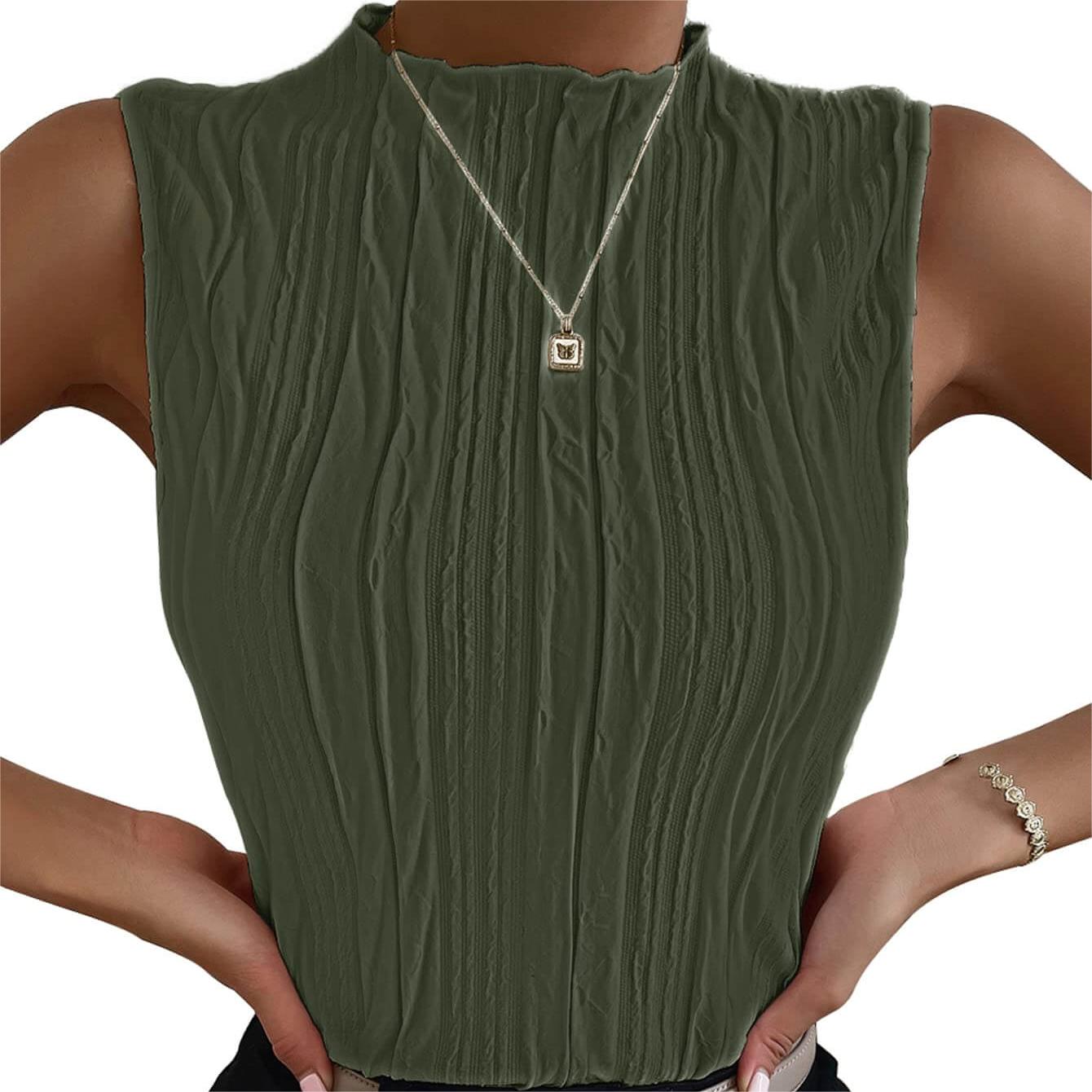 - Sleeveless, mock neck, regular fit, casual tank top